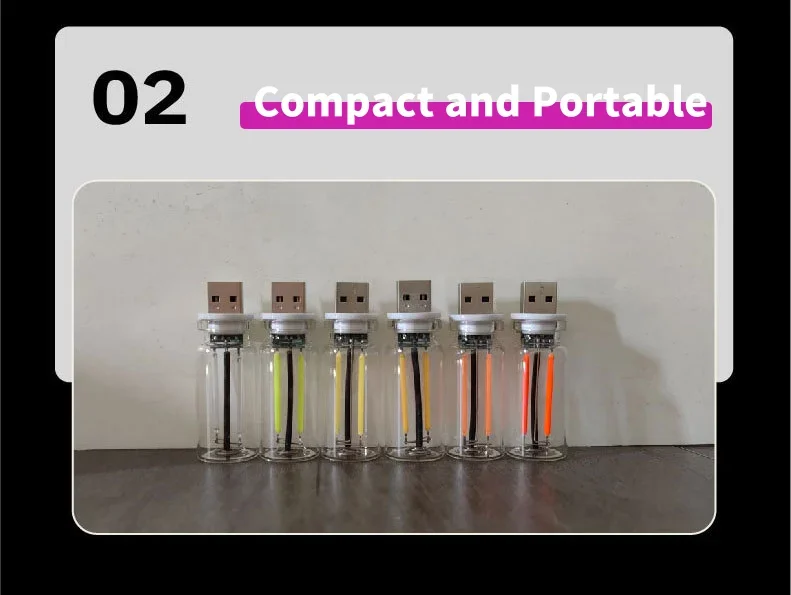 ●Avec sa forme distinctive de bouteille en verre, cette lampe ajoute une touche de charme et de créativité à n'importe quelle pièce.Qu'il soit placé sur une table de chevet, une étagère ou dans votre voiture, il devient instantanément un point focal, rehaussant l'esthétique de votre espace.