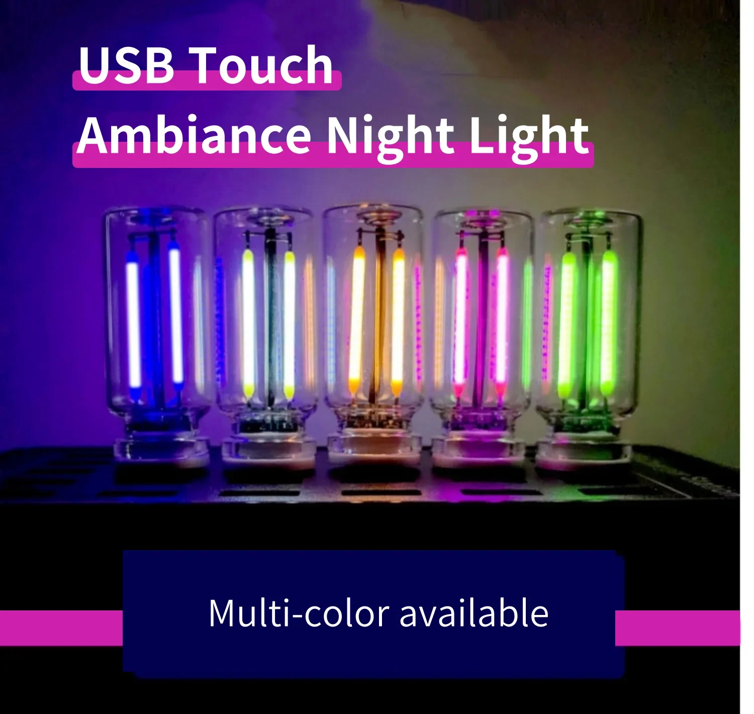 Veilleuse USB pour voiture, tactile, variable, lampe à Filament, éclairage Portable, Plug and Play, lumière d'ambiance décorative pour chambre à coucher de voiture